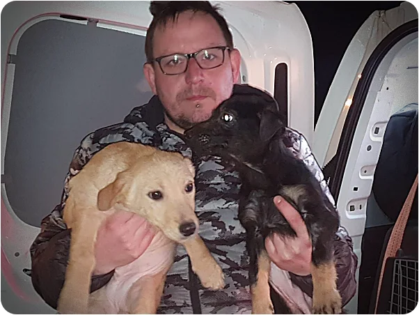 Binnenkomst van twee bange zwerfhonden