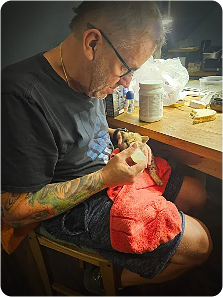 Michal and his team lovingly rehabilitate every rescued animal, so it can enjoy a good life again. First with them at the sanctuary, and later — when possible — in another safe and animal‑friendly environment.